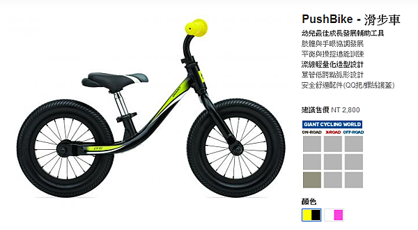 捷安特所出 pushbike 是三款中價格最親民的