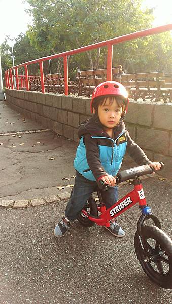 也許是第一次騎滑步車,【德國FistBike】對雄弟來說高度和必須跨過車身有點吃力